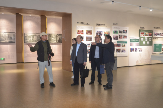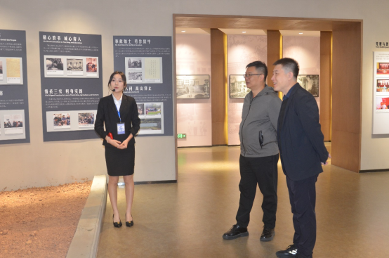 6、10月29日,农业农村部农产品质量安全中心副主任朱泽闻(图中右二)一行10人参观校史馆,范大明副校长(图中右一)陪同。讲解员:李妙歌。