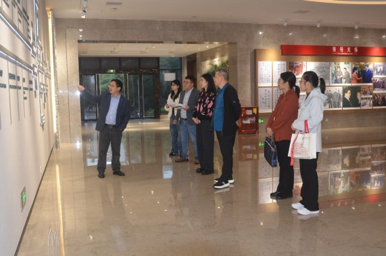 7、10月29日,渝北区龙兴镇党委书记邓天才(图中左三)一行12人参观校史馆。讲解员:薛金玲。