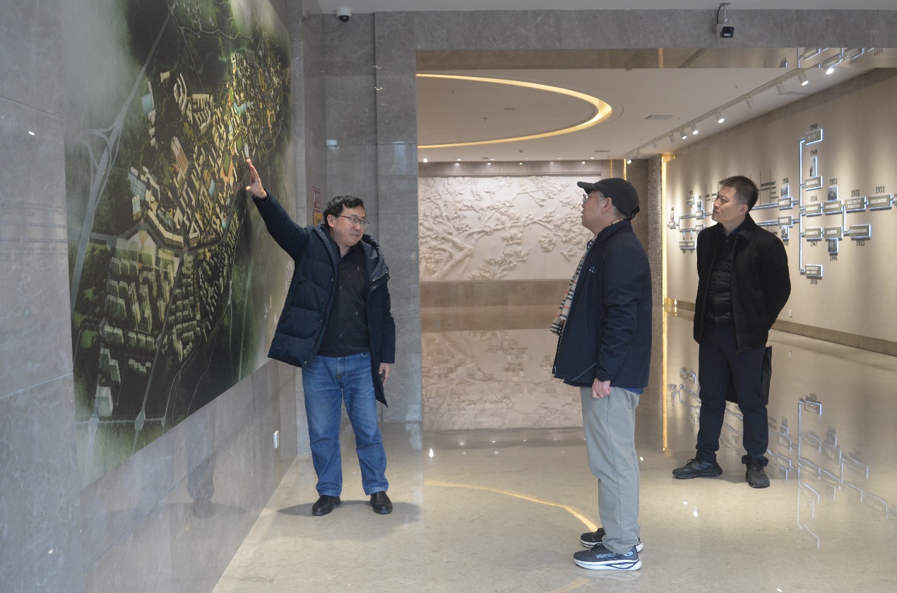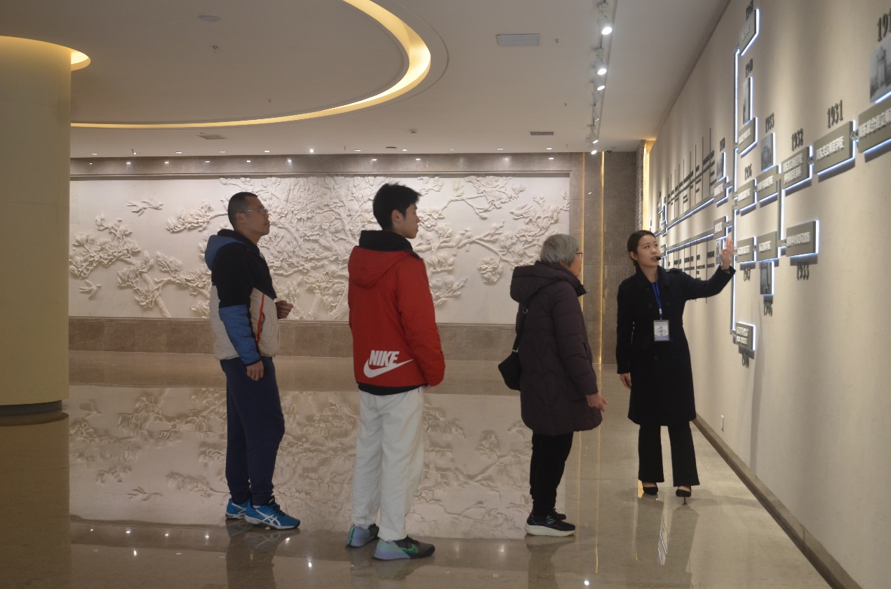 2、1月8日,范大明副校长(右一)带客人一行6人参观校史馆。讲解员:郑劲松副馆长(左一)、张怡。