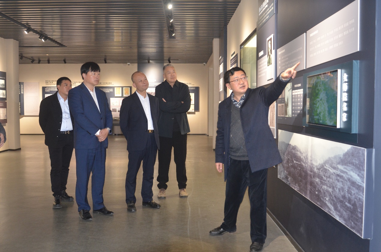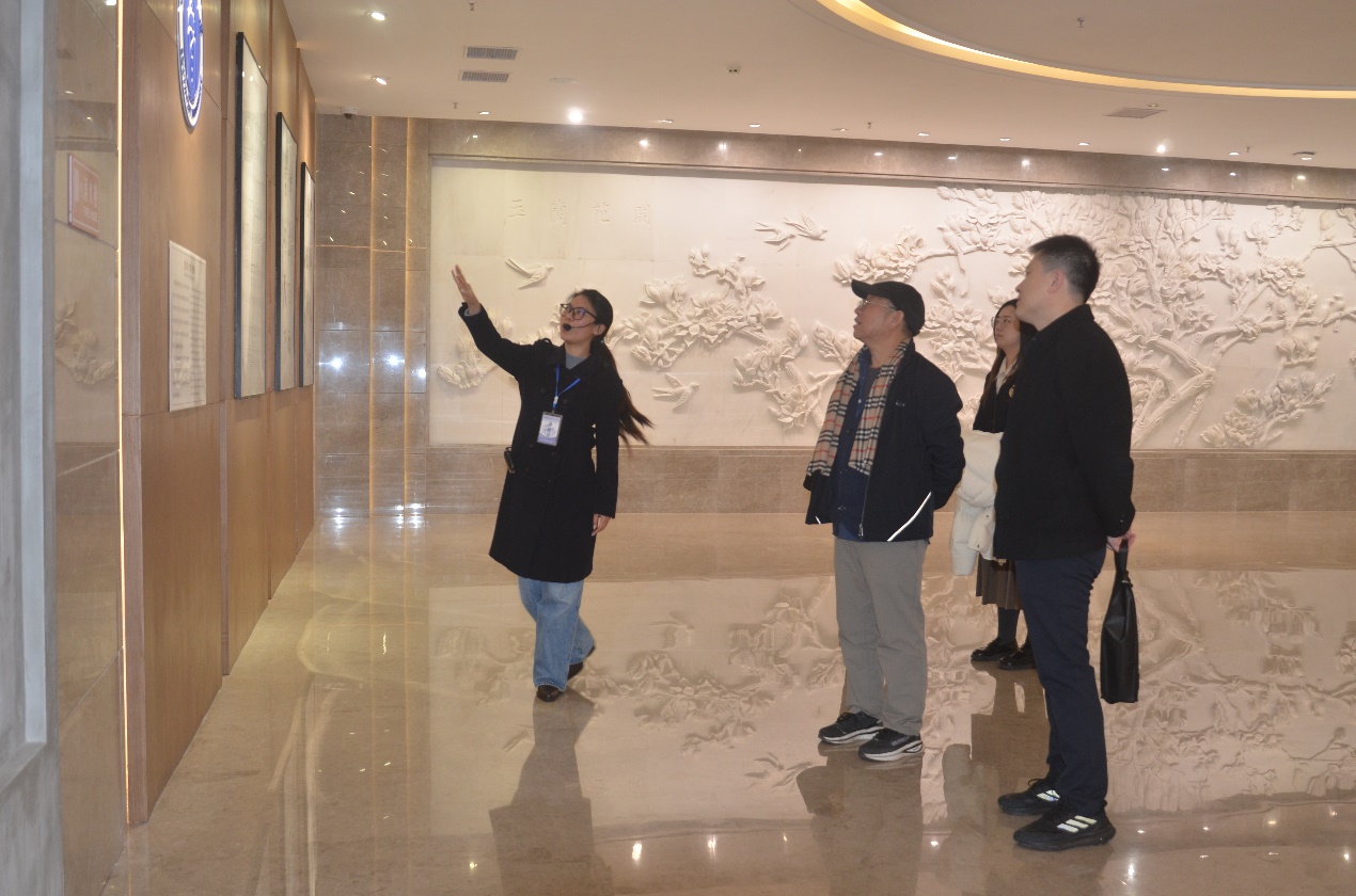 6、1月17日,香港智华基金有限公司顾问、中国区域负责人、学校校友潘旭波(左二)一行8人参观校史馆。副校长葛信勇(左四)陪同。讲解员:郑劲松副馆长。