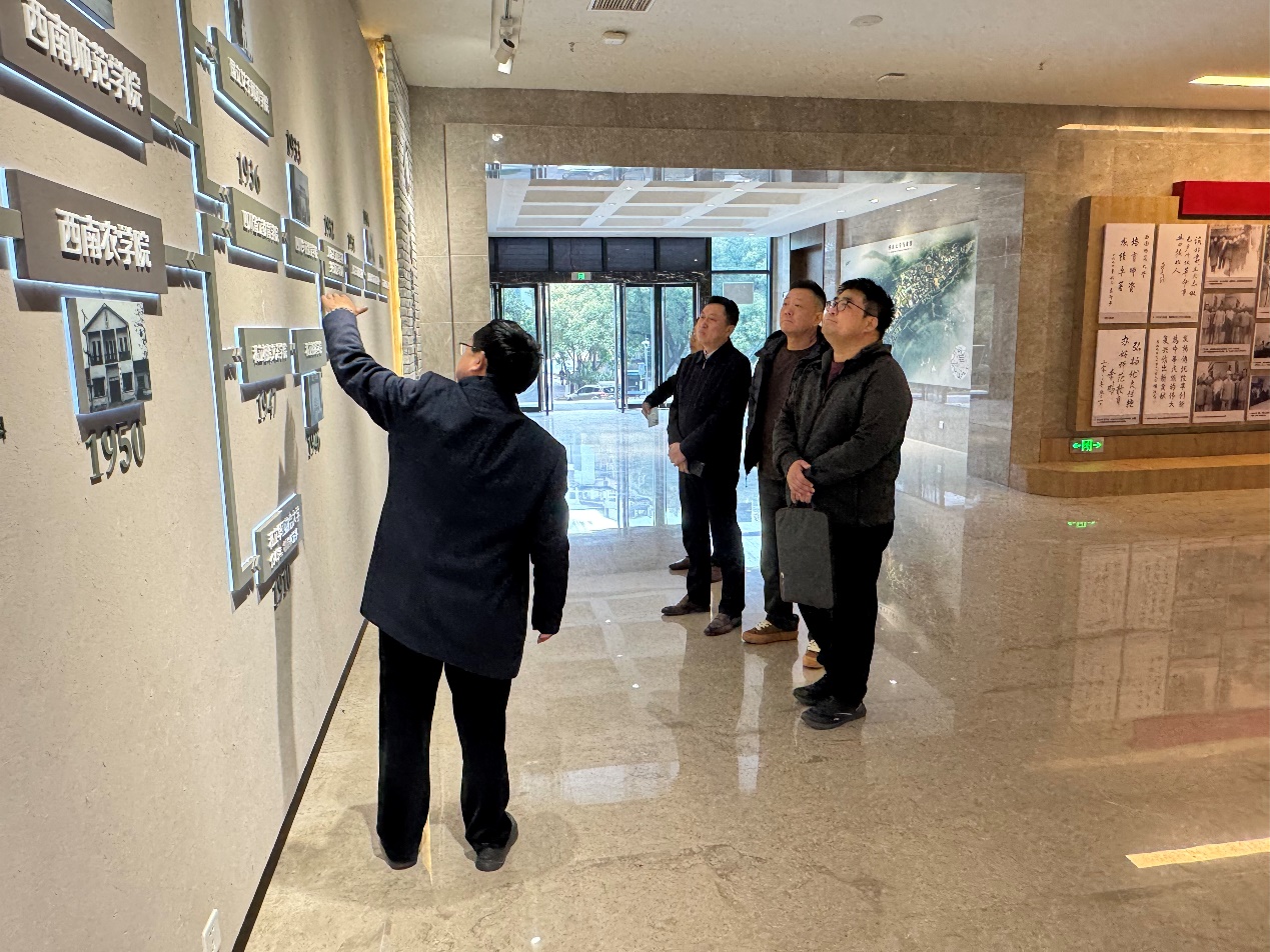 8、2月26日,中国教育报重庆站站长刘勇一行4人参观校史馆。讲解员:郑劲松副馆长。