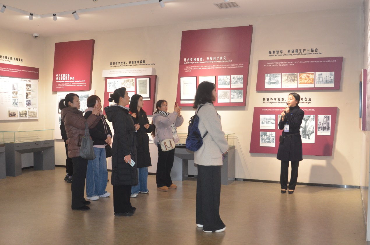 1、1月8日,贵州省贵阳市“甲秀之光”教育学者访问团一行12人参观校史馆。讲解员:袁诚黛。