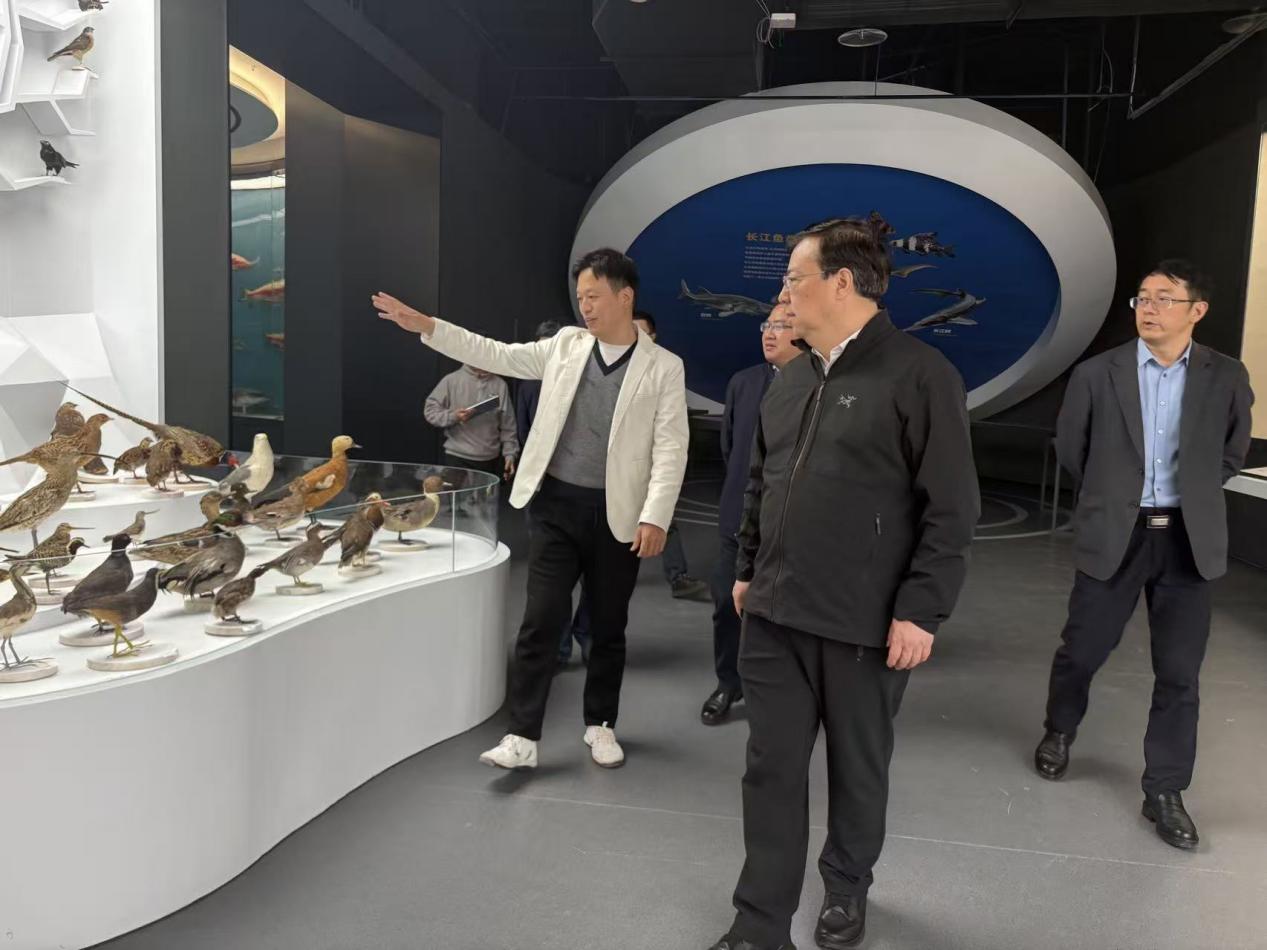 在自然馆,王进军、邱江认真观看了各个单元的展览主题、标本展示和场景设计,对我校丰厚的自然馆藏和良好的展陈效果表示满意。两位领导还认真观看了自然馆主题宣传片和学校自然科学方向学者专家介绍短片,对一些细节处理提出了具体整改意见。