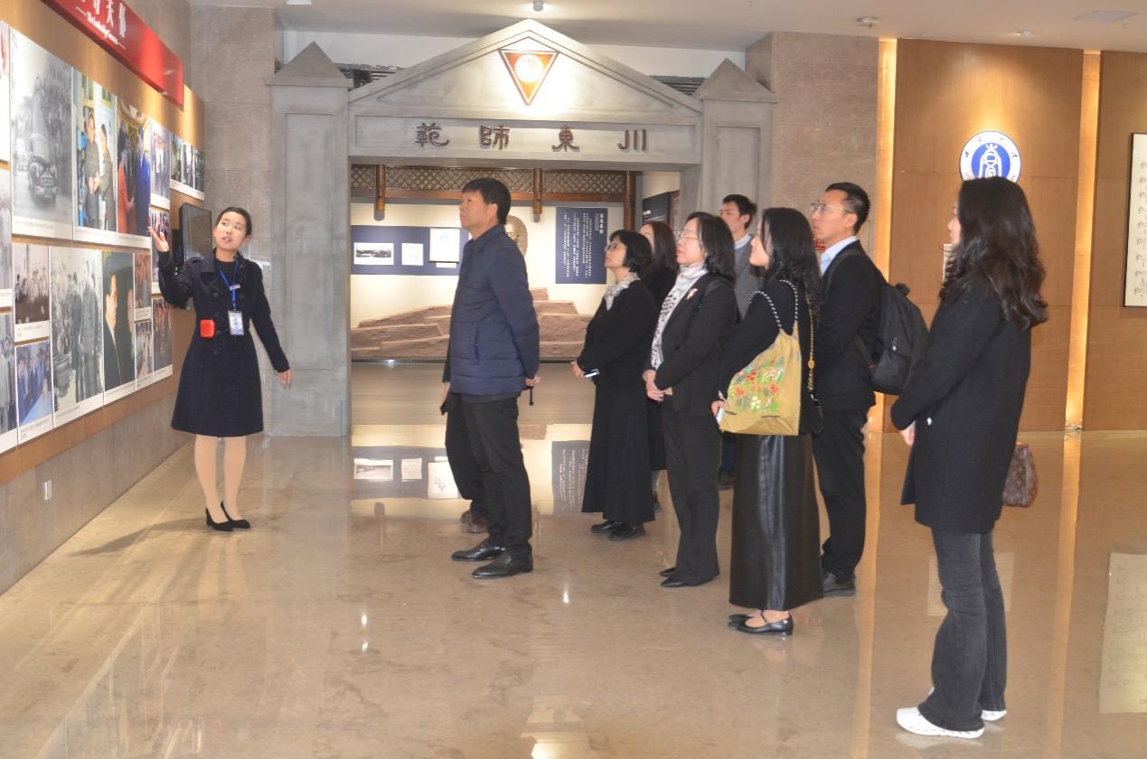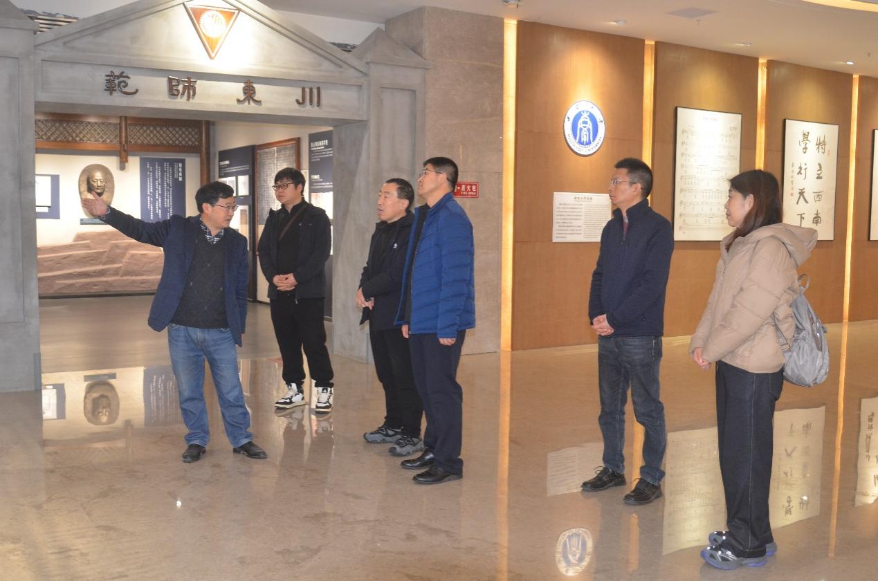 3、11月25日,山东师范大学副校长蔡阳健(图中右二)一行5人参观校史馆。讲解员:覃焕。
