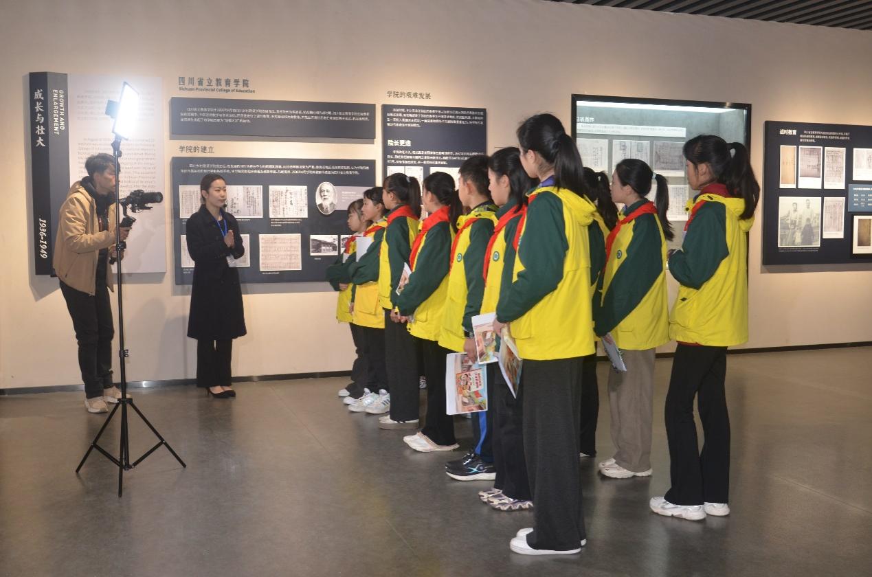 8、11月27日,重庆市教委离退休处一行20人参观校史馆。讲解员:阎臻倬。