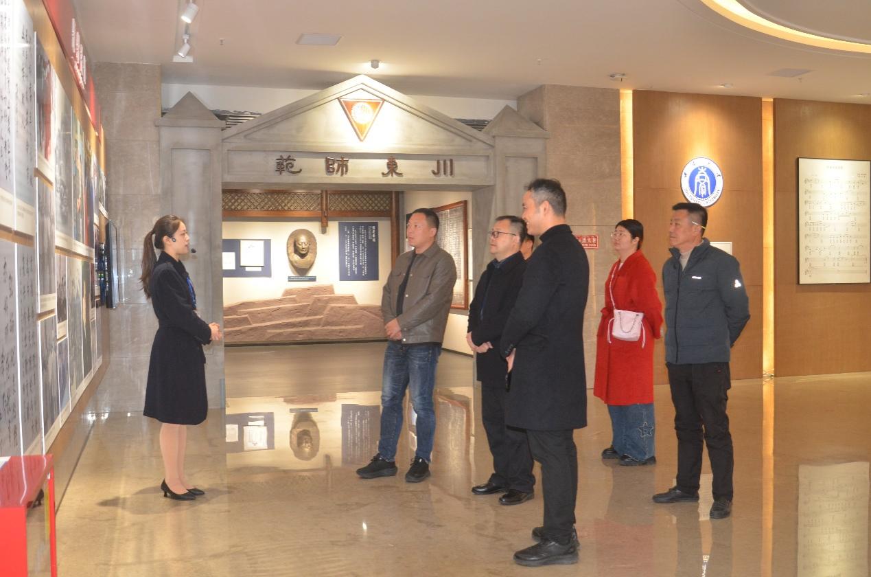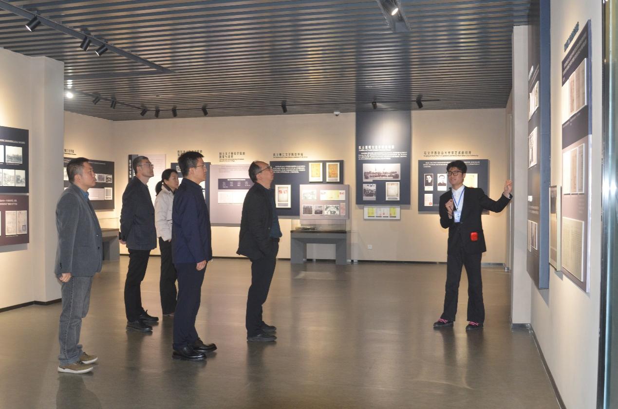 6、11月26日,温州大学党委副书记庄兴忠(图中左二)一行10人参观校史馆。讲解员:侯语卓。