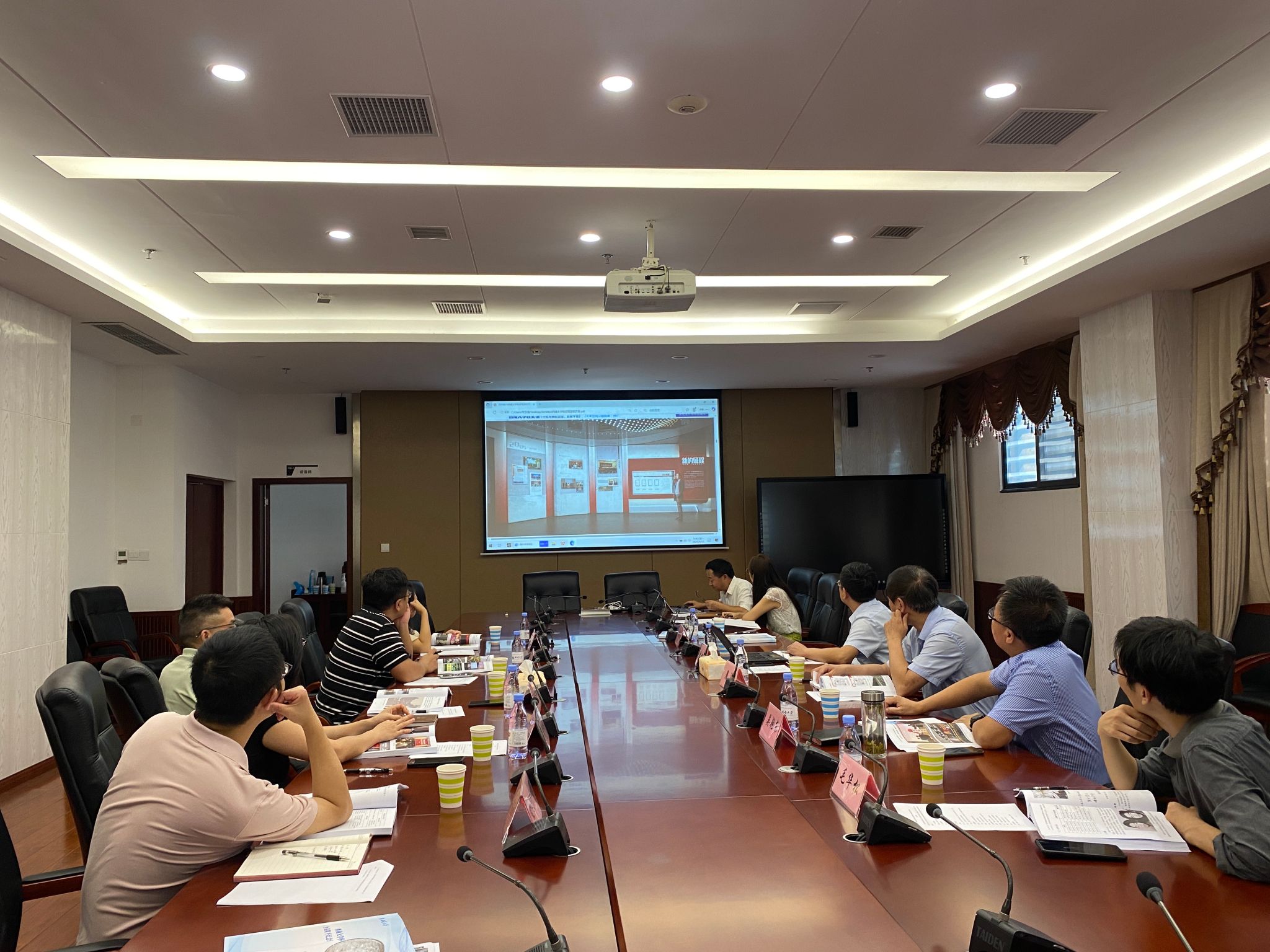 吴艳东馆长主持会议,并简要通报当前场馆建设进展情况。郑劲松副馆长介绍展陈建设中标单位现有设计方案,并重点围绕“缩”“减”“变”“增”等改版策展思路,就目前的细化脚本做了详细汇报。