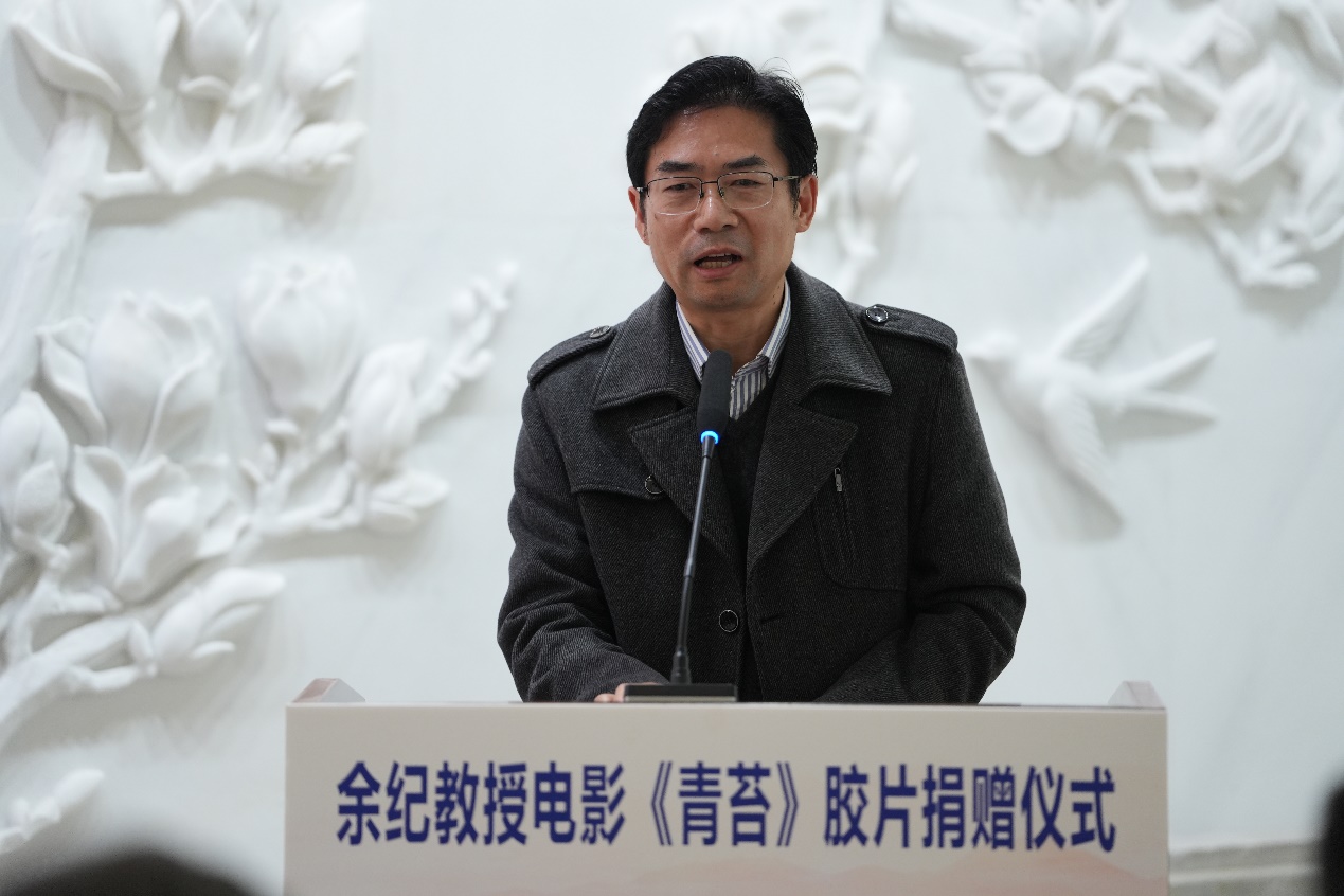 12月10日下午,校史馆一楼序厅内,暖意融融。著名导演、编剧,文学院教授余纪捐赠电影《青苔》胶片仪式在这里简洁而隆重地举行。
